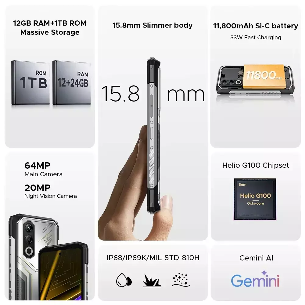 DOOGEE Blade20 Max Rugged Phone Android 15 12GB RAM 1T ROM 6.6''